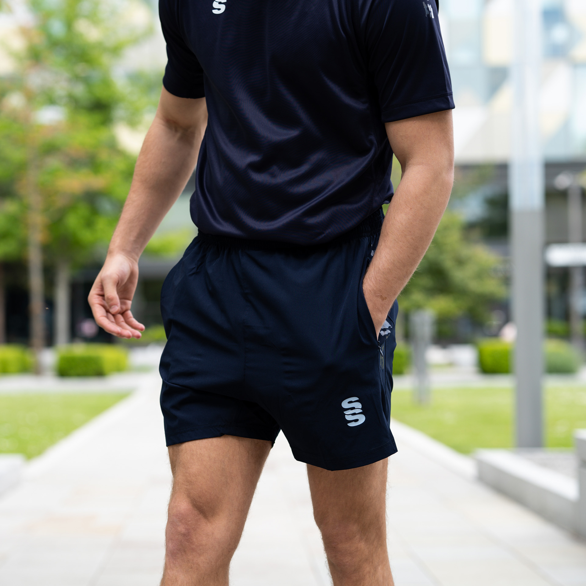 The Performance Gym Short is made with a poly peached micro-fibre blend, with a modern shorter leg length. They're built for gym and physical exercise and feature an elasticated hem with draw cord for flexibility and comfort. 2 Zipped pockets allow for small belongings. To finish, our Surridge SS logo is situated on the left bottom hem.